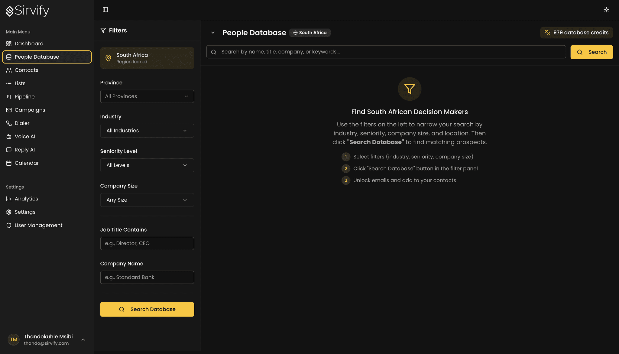 Filter by industry, company size, seniority, LSM and location to find your ideal prospects instantly.